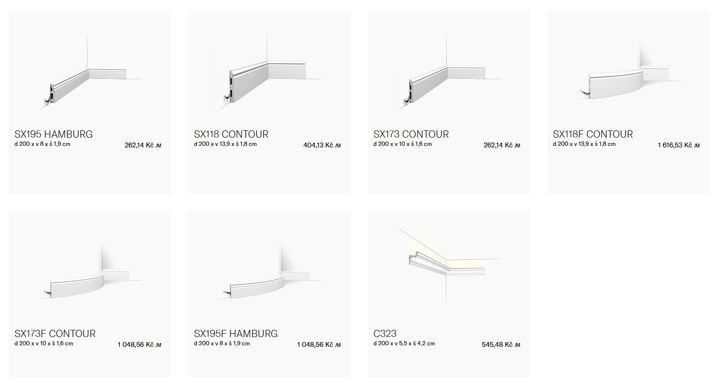 Díky čtyřem novinkám je naše desetičlenná rodina kompletní. Kombinace stropních, lemovacích a podlahových lišt ještě nikdy nebyla tak snadná. S touto rozšířenou rodinou již nic není příliš malé ani příliš velké.